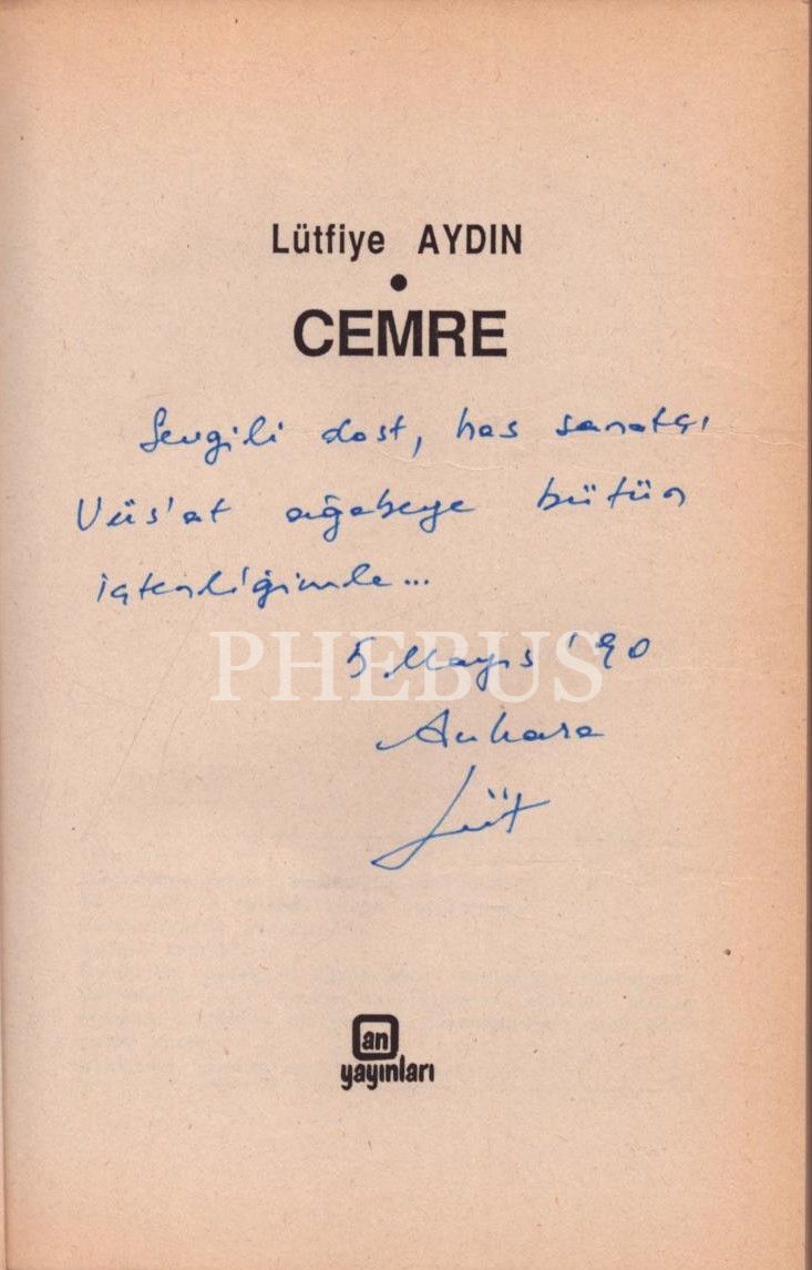 Lütfiye Aydın´dan Vüs'at O Bener'e ithaflı ve imzalı CEMRE, An Yayınları, Mayıs 1990, 96 sayfa, 13x20 cm