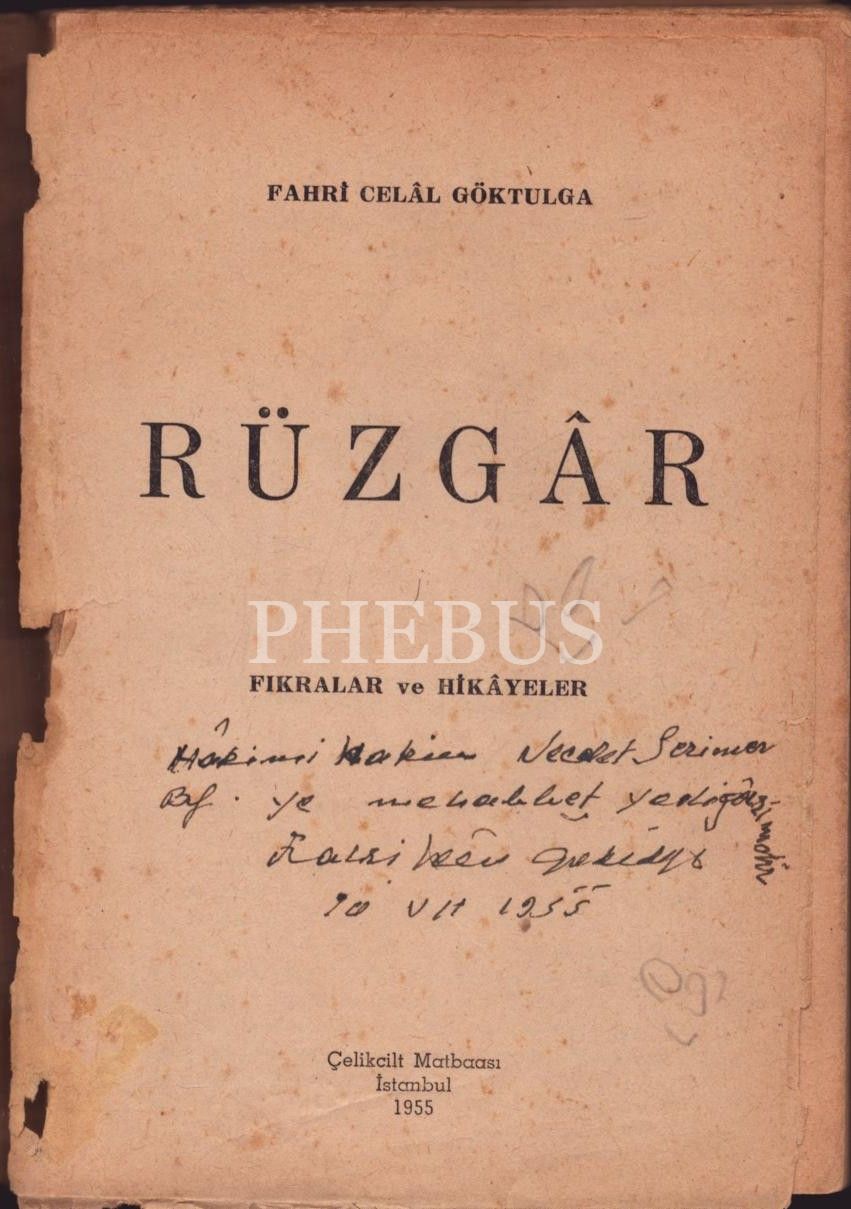 Fahri Celâl Göktulga´dan ithaflı ve imzalı RÜZGÂR (Fıkralar ve Hikâyeler), Çelikcilt Matbaası, İstanbul - 1955, 126 sayfa, 14x20 cm