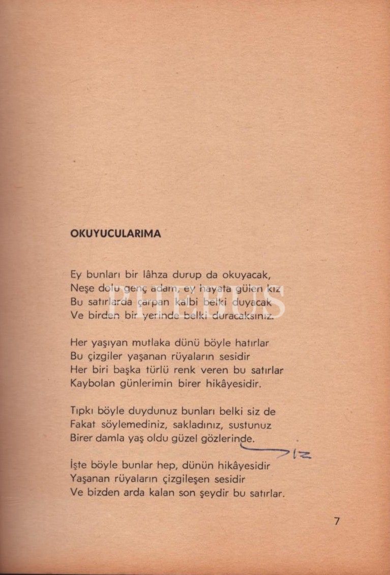 İthaf, "Aziz ve muhterem Süzân Hanımefendiye tazimlerimle. 12-12-1982" şeklindedir.