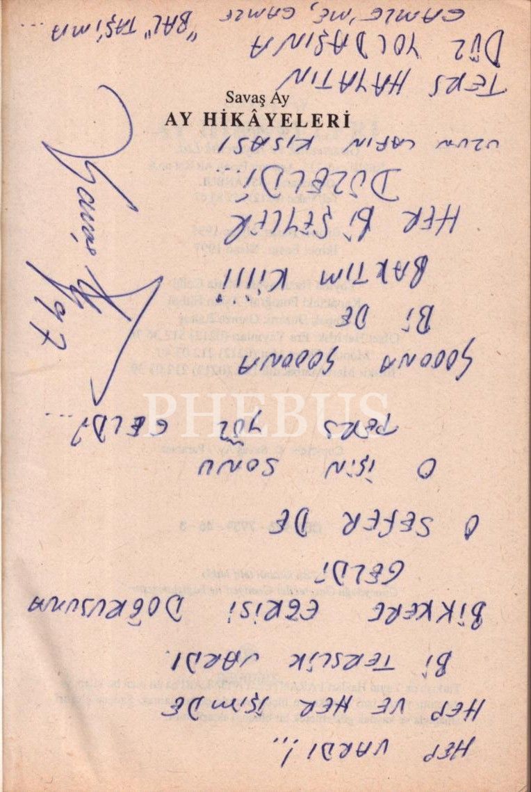 Savaş Ay´dan ithaflı ve imzalı AY HİKÂYELERİ, Parantez Gazetecilik ve Yayıncılık Ltd., Nisan 1997, 128 sayfa, 14x20 cm