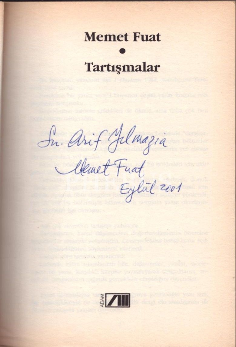 Memet Fuat´tan ithaflı ve imzalı TARTIŞMALAR, Adam Yayınları, Ekim 2001, 623 sayfa, 14x20 cm