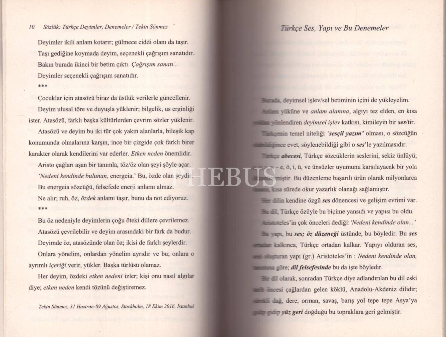 Tekin Sönmez´den Turgay Fişekçi´ye ithaflı ve imzalı SÖZLÜK: Türkçe Deyimler - Denemeler (Araştırma), Yüzyıl Kitapları, 2016, 438 sayfa, 14x20 cm