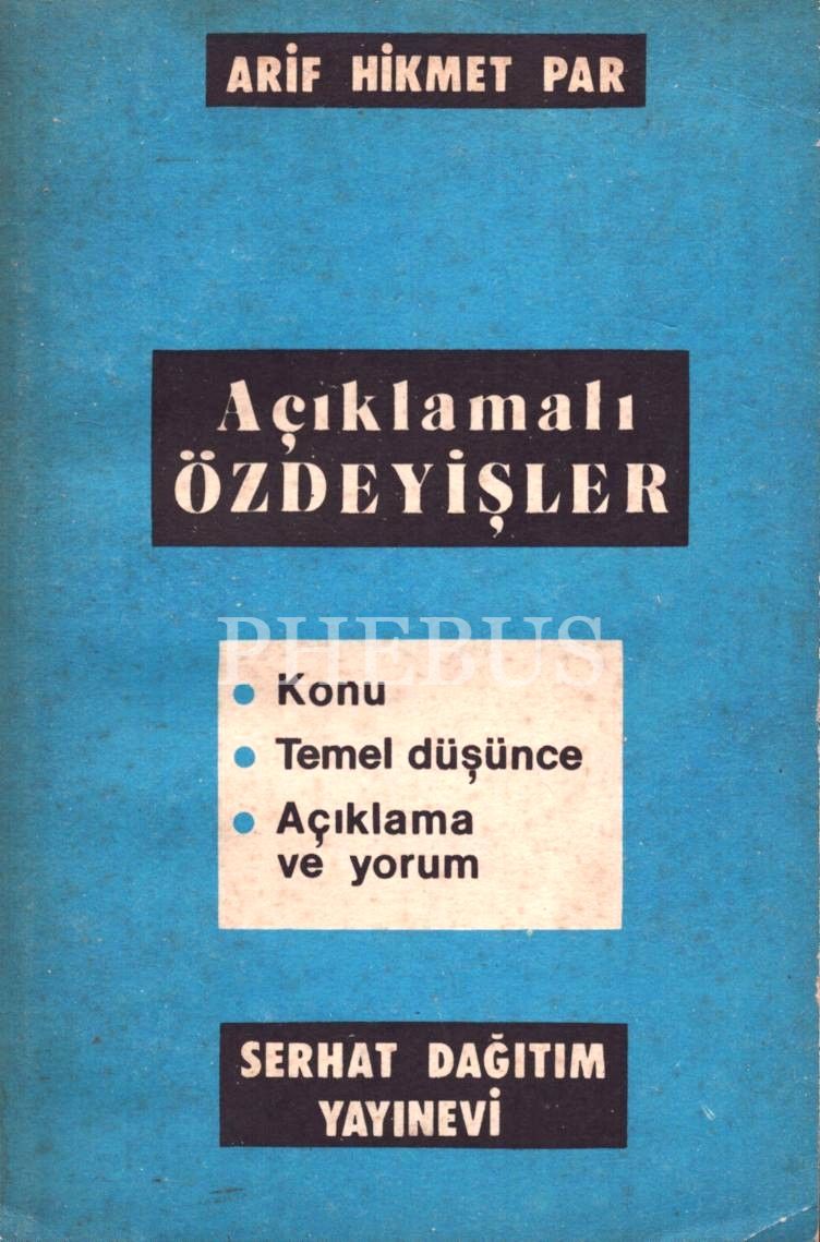 Arif Hikmet Par´dan ithaflı ve imzalı AÇIKLAMALI ÖZDEYİŞLER (Konu - Temel Düşünce - Açıklama ve Yorum), Serhat Dağıtım Yayınları, 197 sayfa, 13x20 cm