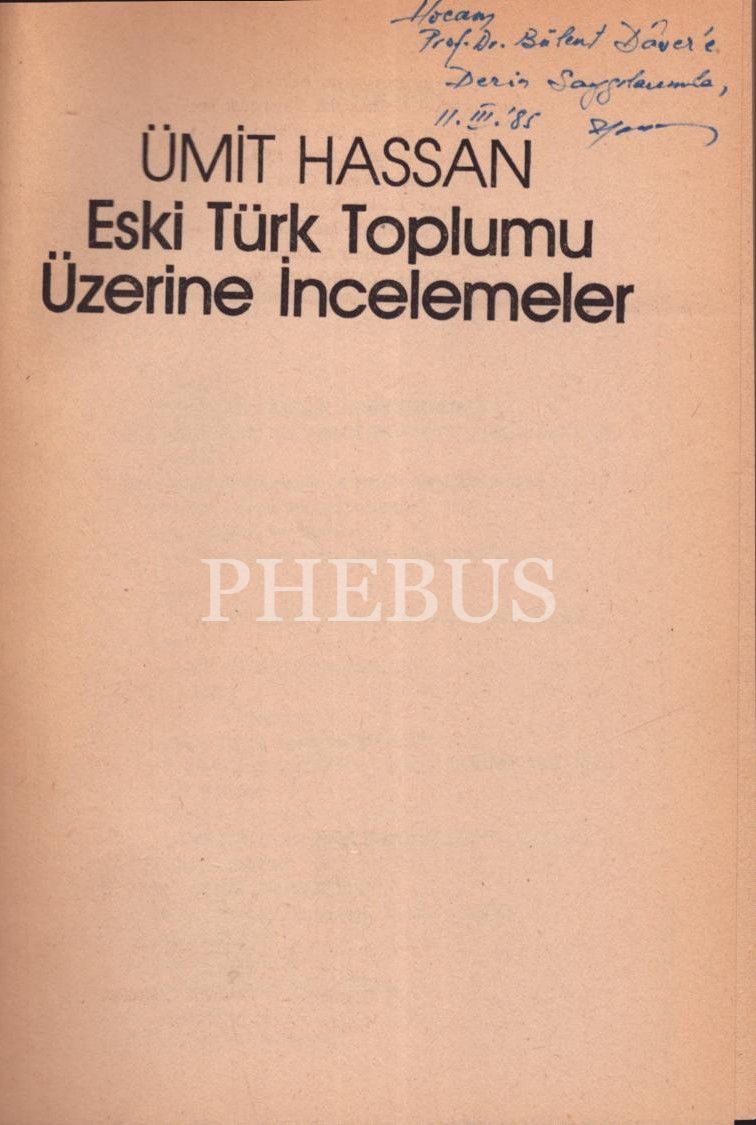Ümit Hassan´dan ithaflı ve imzalı ESKİ TÜRK TOPLUMU ÜZERİNE İNCELEMELER, Kaynak Yayınları, Mart 1985, 367 sayfa, 14x20 cm