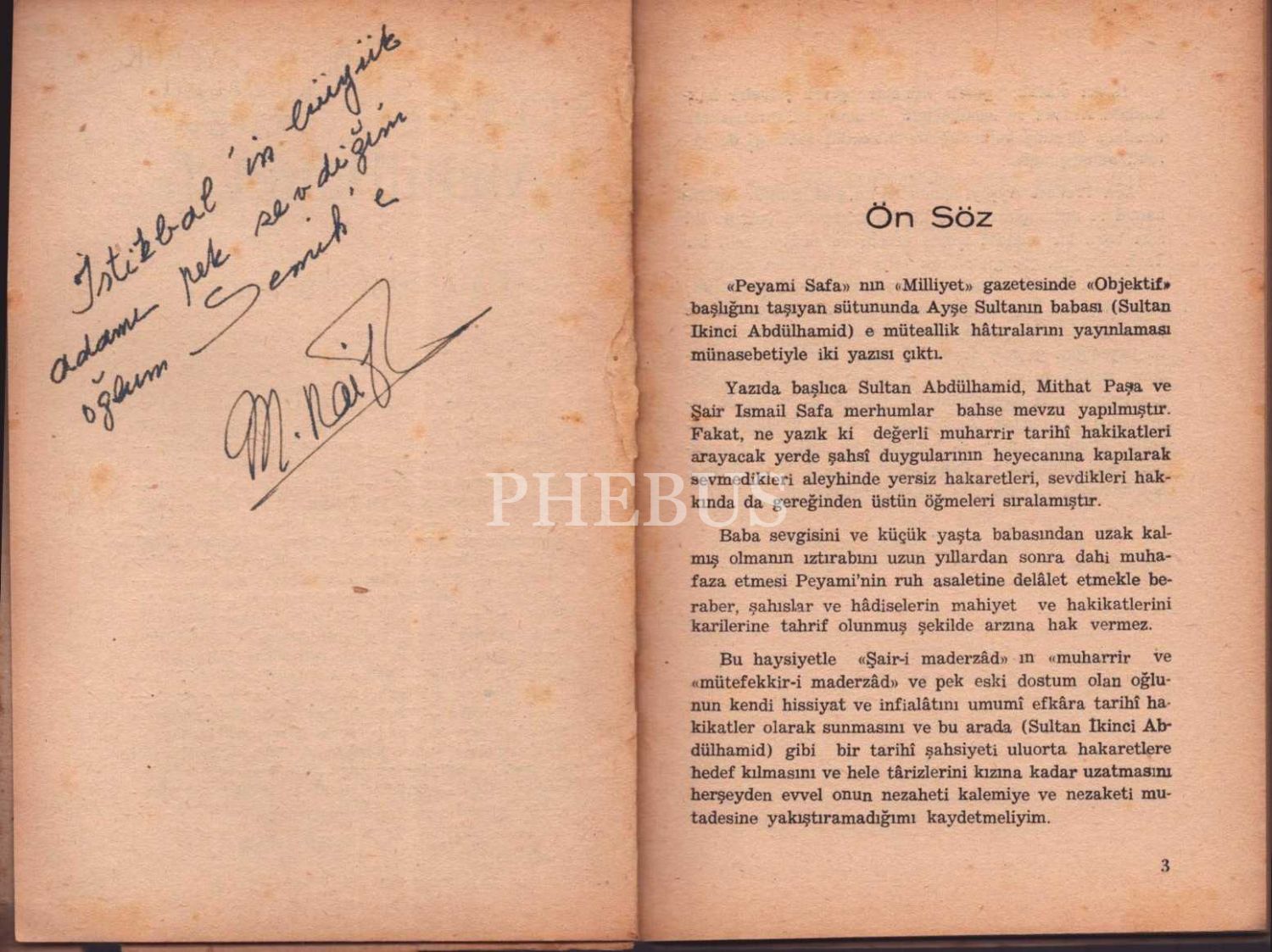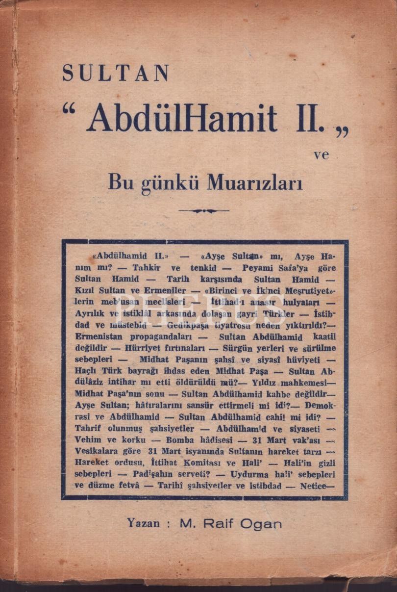 M. Raif Ogan´dan ithaflı ve imzalı SULTAN "ABDÜLHAMİT II." VE BU GÜNKÜ MUARIZLARI, İstanbul, 78 sayfa, 14x20 cm