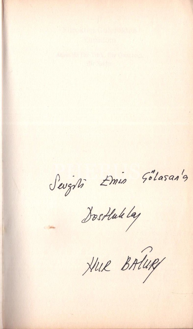 İthaf, "Sevgili Emin Çölaşan´a dostlukla. Nur Batur" şeklindedir.