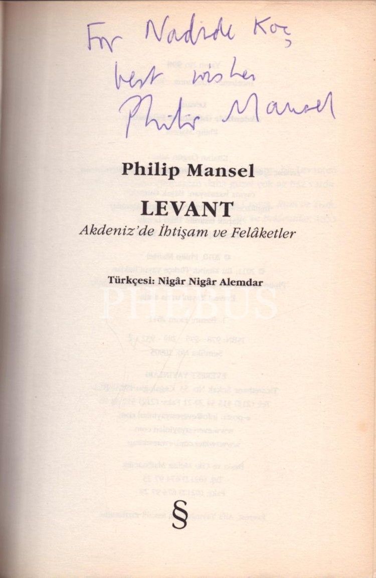 Philip Mansel´den ithaflı ve imzalı LEVANT: Akdeniz´de İhtişam ve Felâketler, Türkçesi: Nigâr Nigâr Alemdar, Everest Yayınları, Ekim 2011, 637 sayfa, 14x20 cm