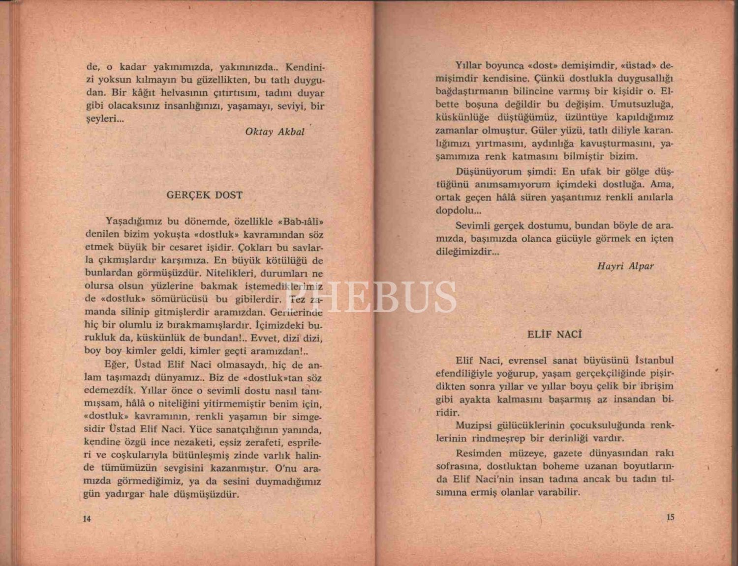 Elif Naci´den ithaflı ve imzalı ELİF´İN 60 YILI (Resimde ve Basında), İstanbul - 1976, 89 sayfa, 13x20 cm