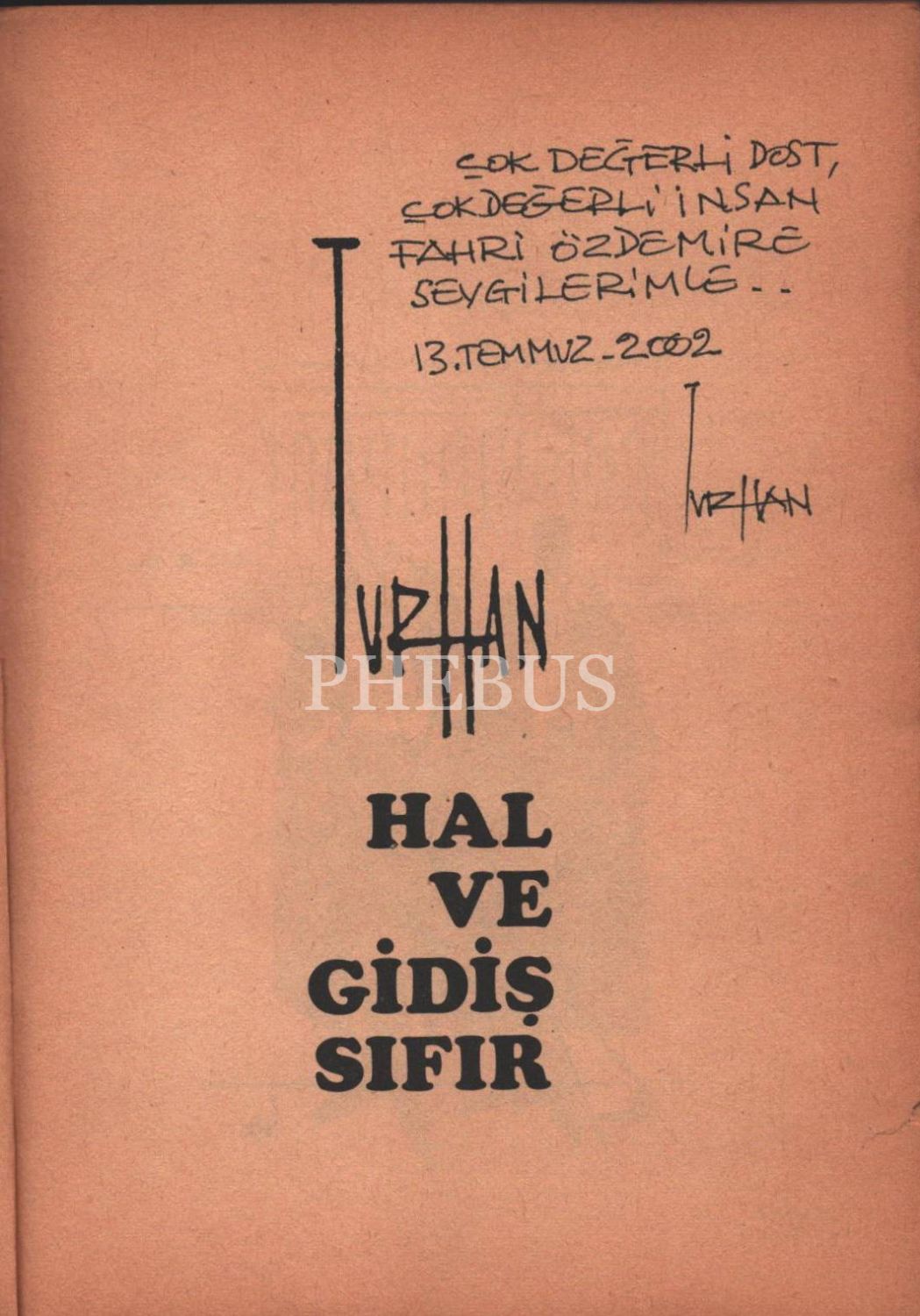 İthaf, "Çok değerli dost, çok değerli insan Fahri Özdemire sevgilerimle.. 13 Temmuz 2002 Turhan" şeklindedir.