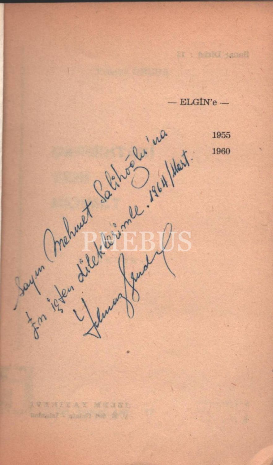İthaf; "Sayın Mehmet Salihoğlu´na en içten dileklerimle. Mart 1964" şeklindedir.