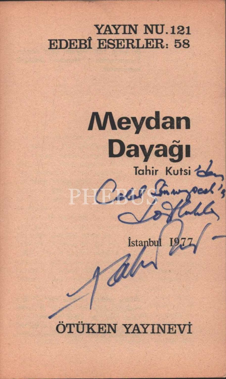 Tahir Kutsi´den ithaflı ve imzalı MEYDAN DAYAĞI, Ötüken Yayınevi, İstanbul - 1977, 180 sayfa, 12x19 cm