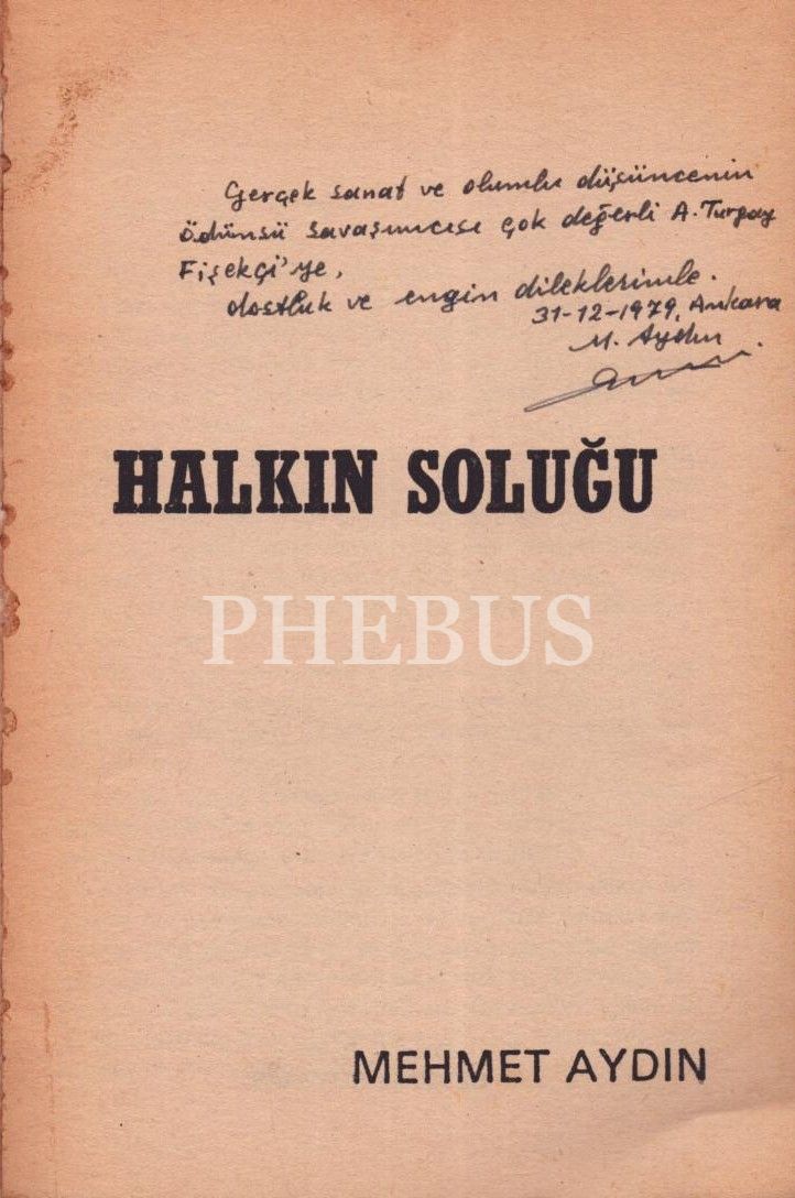 Mehmet Aydın´dan Turgay Fişekçi'ye imzalı ve ithaflı HALKIN SOLUĞU, Osmanlı Matbaası, 38 sayfa, 12x19 cm