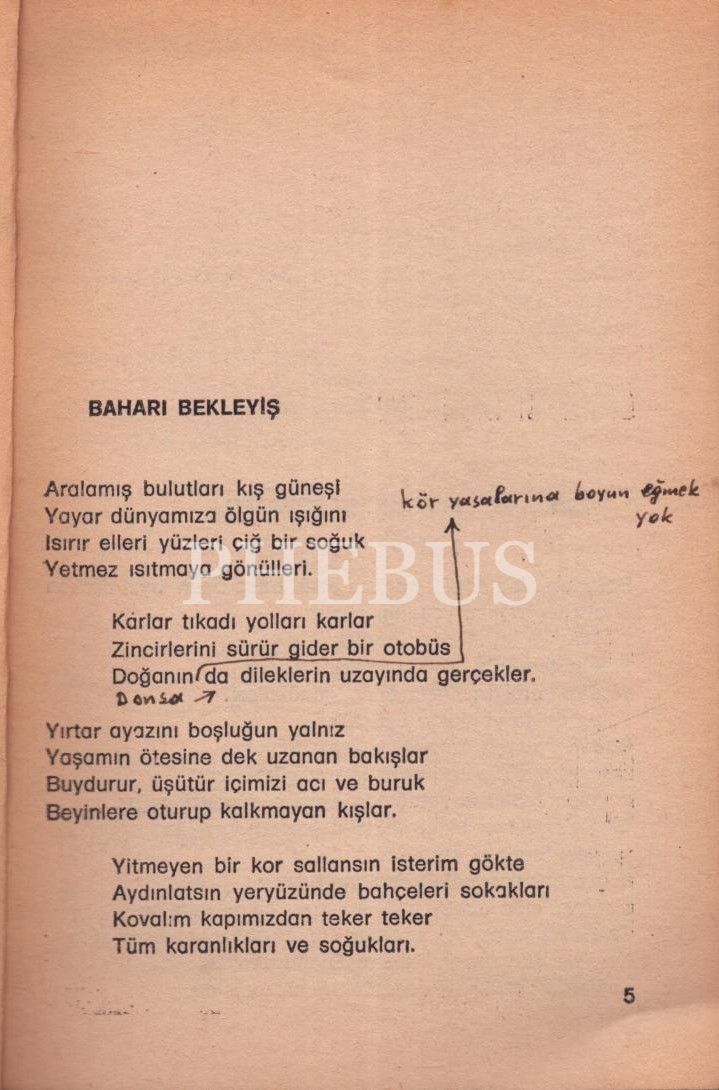 İthaf; "Gerçek sanat ve olumlu düşüncenin ölümlü savaşcısı çok değerli A. Turgay Fişekçi´ye dostluk ve engin dileklerimle, 31.12.1979 Ankara" şeklindedir.