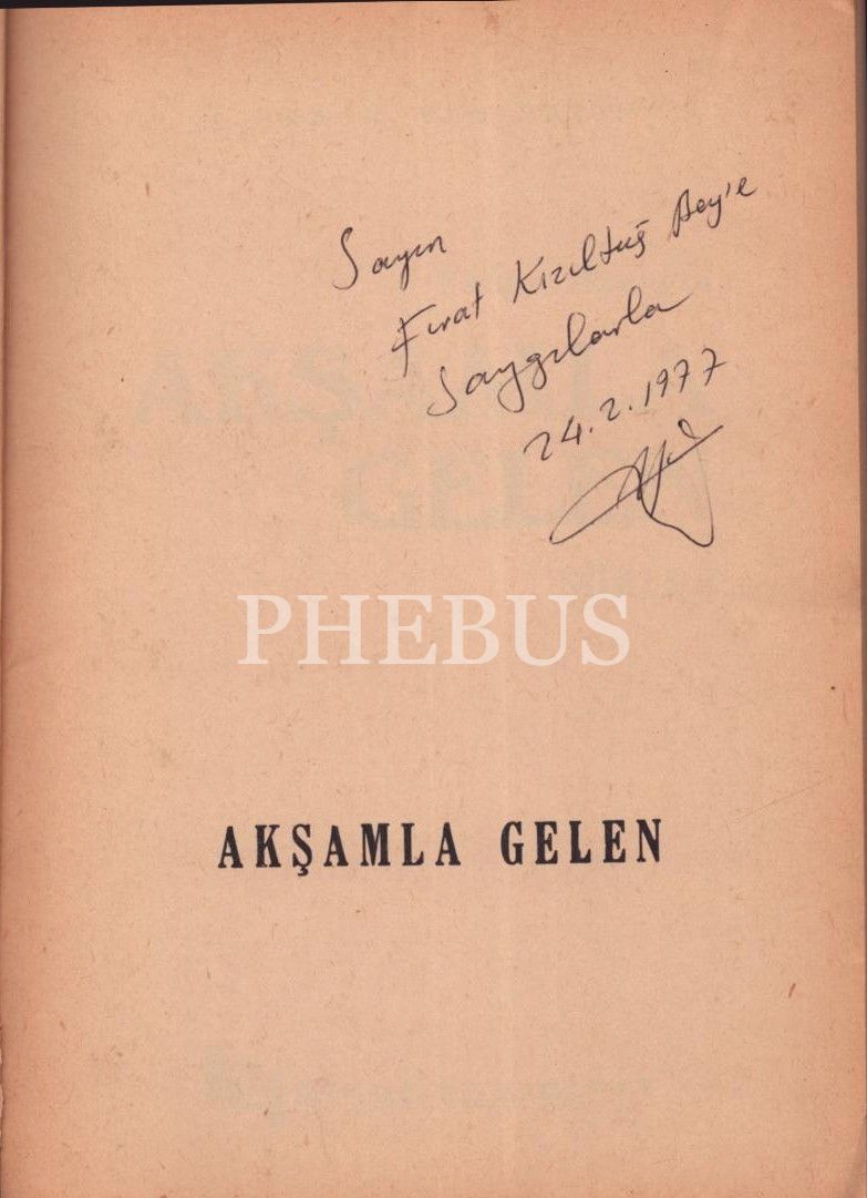 Yahya Akengin´den Fırat Kızıltuğ'a ithaflı ve imzalı AKŞAMLA GELEN, Hisar Yayınları, Ankara - 1973, 63 sayfa, 13x19 cm
