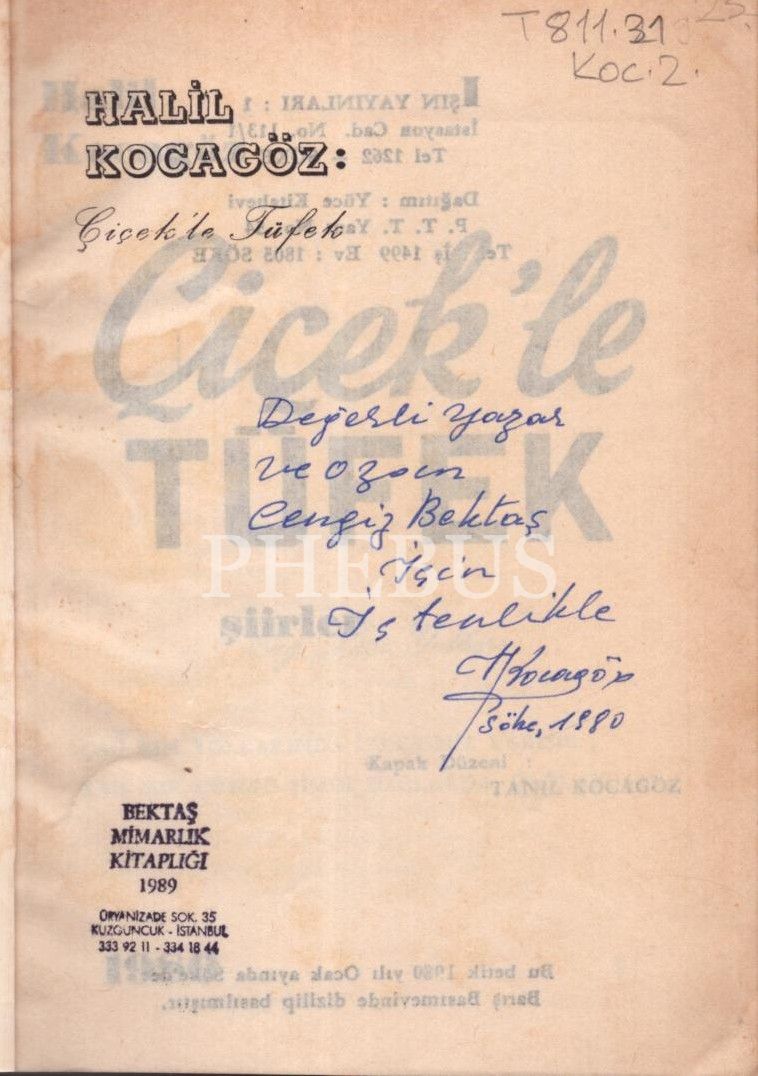 Halil Kocagöz´den Cengiz Bektaş'a ithaflı ve imzalı ÇİÇEK´LE TÜFEK, Işın Yayınları, Söke - 1980, 91 sayfa, 14x19 cm