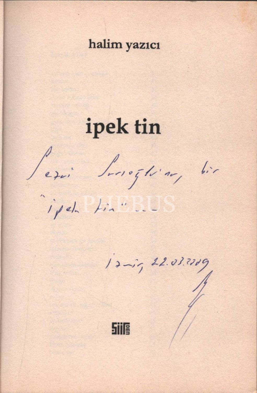 Halim Yazıc´dan ithaflı ve imzalı İPEK TİN, Şiirden, 2008, 70 sayfa, 13x20 cm