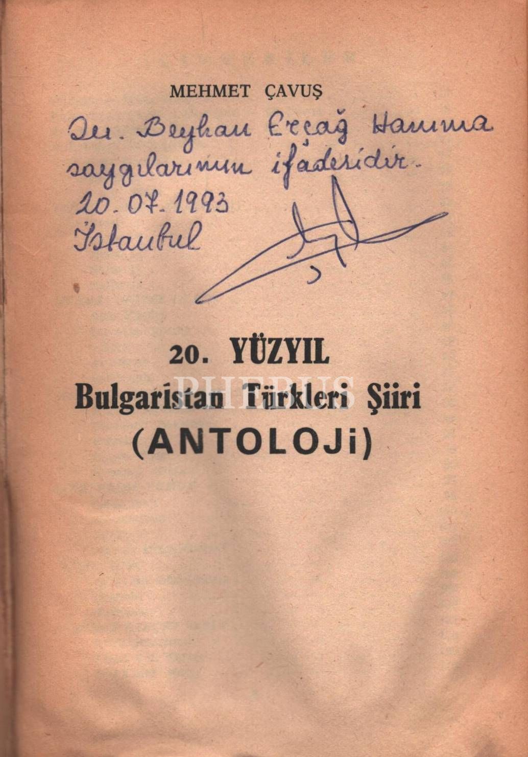 Mehmet Çavuş´dan ithaflı ve imzalı 20.YÜZYIL BULGARİSTAN TÜRKLERİ ŞİİRİ (Antoloji), Yaylacık Matbaası, İstanbul - 1988, 384 sayfa, 13x19 cm