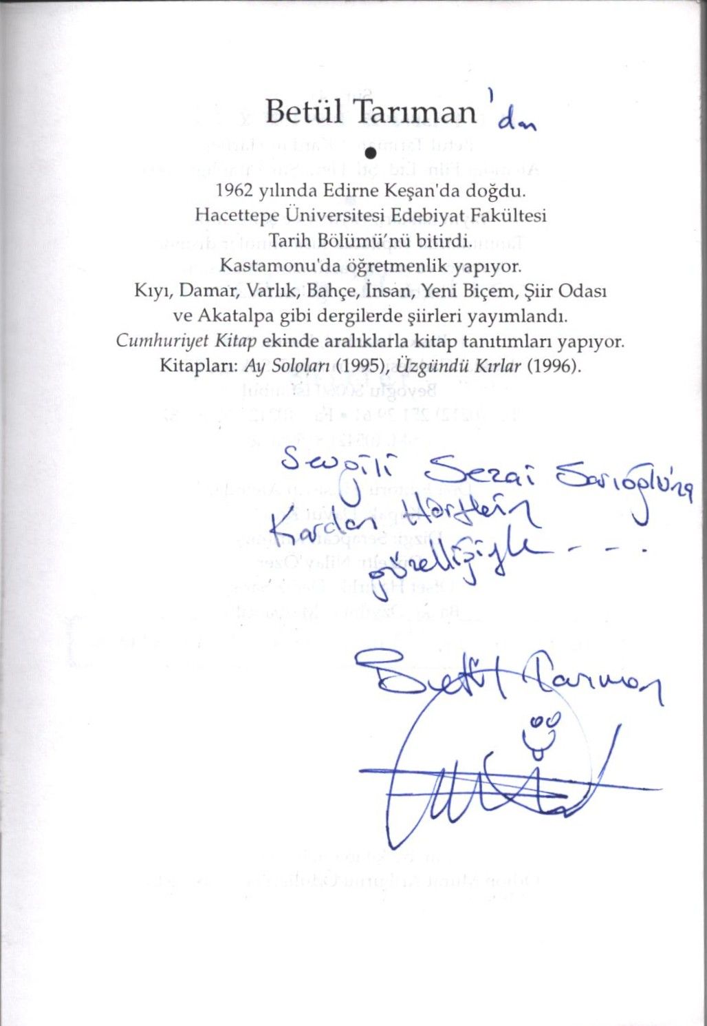 Betül Tarıman´dan ithaflı ve imzalı KARDAN HARFLER, Hera Şiir, İstanbul - 2000, 61 sayfa, 13x19 cm