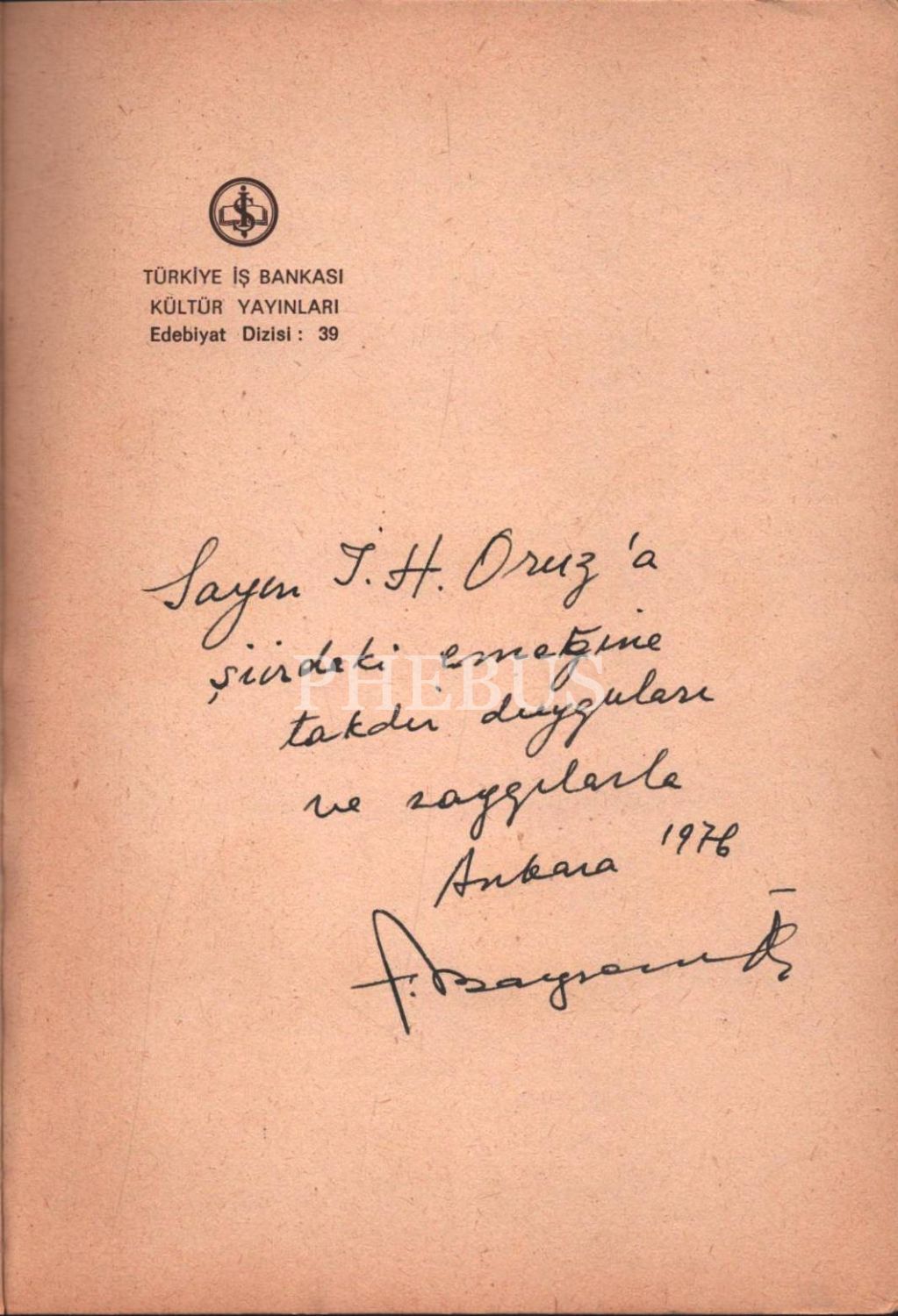 İthaf; "Sayın İ.H. Oruz´a şiirdeki emeğine taktir duyguları ve saygılarla, Ankara 1976" şeklindedir.