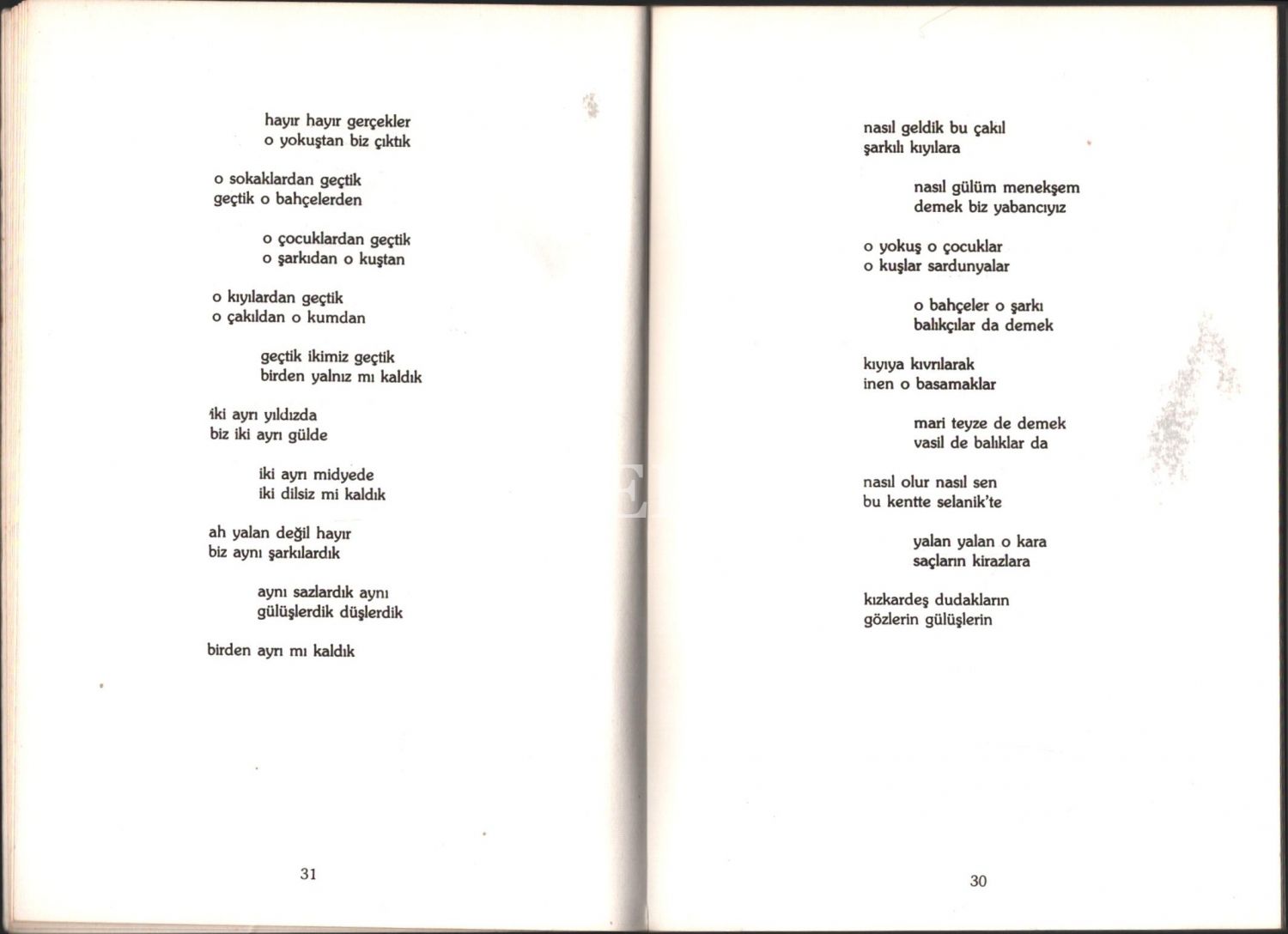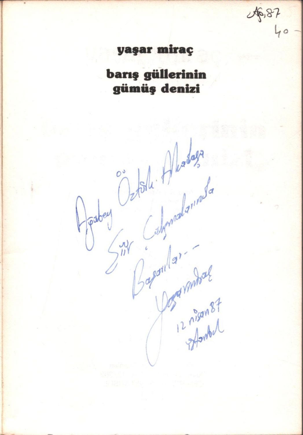 İthaf: "Ağabay Öztürk arkadaşa şiir çalışmalarında başarılar.. 12 Nisan 1987" şeklindedir.