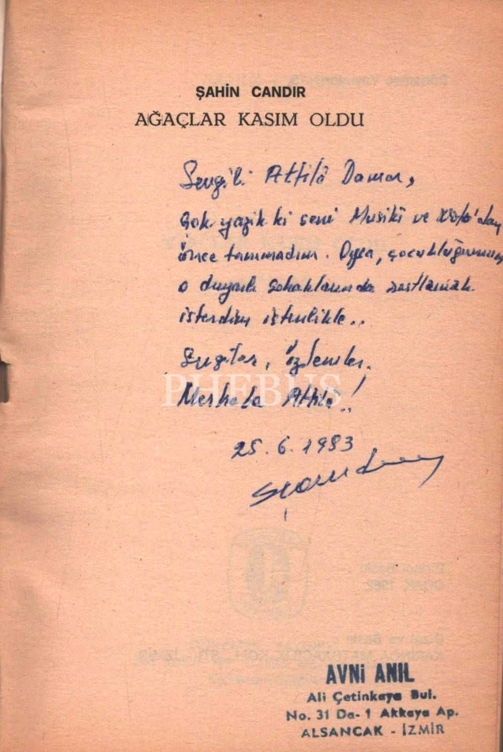 Şahin Candır´dan Atilla Damar'a ithaflı ve imzalı AĞAÇLAR KASIM OLDU, Dönemeç Yayınevi, İstanbul - 1982, 48 sayfa, 13x20 cm