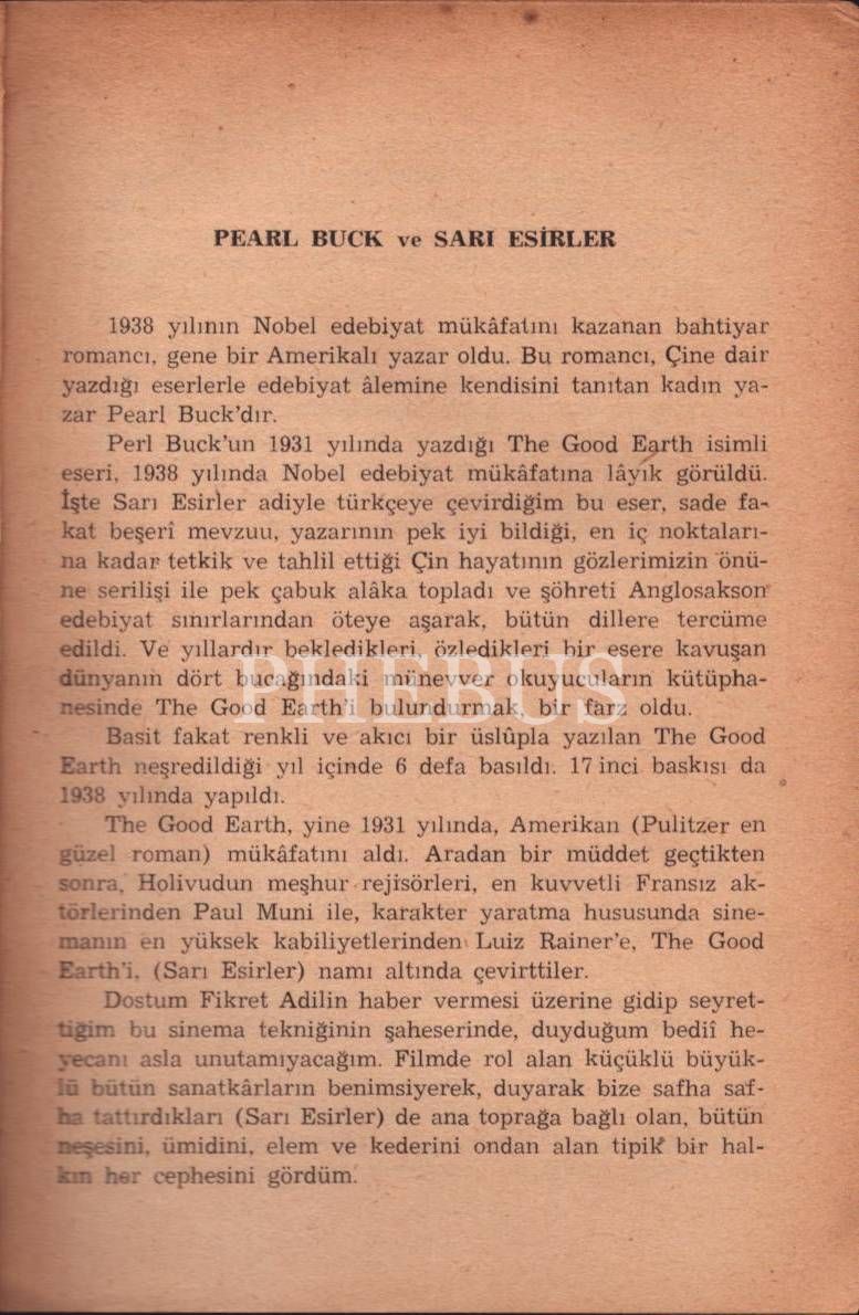 Çevirmen İbrahim Hovi´den ithaflı ve imzalı SARI ESİNLER, Pearl S. Buck, Remzi Kitabevi, İstanbul - 1961, 340 sayfa, 14x20 cm