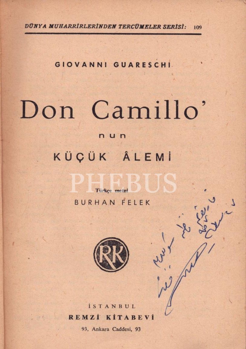 Burhan Felek´ten ithaflı ve imzalı DON CAMİLLO´NUN KÜÇÜK ÂLEMİ, Remzi Kitabevi, İstanbul - 1957, 220 sayfa, 14x20 cm