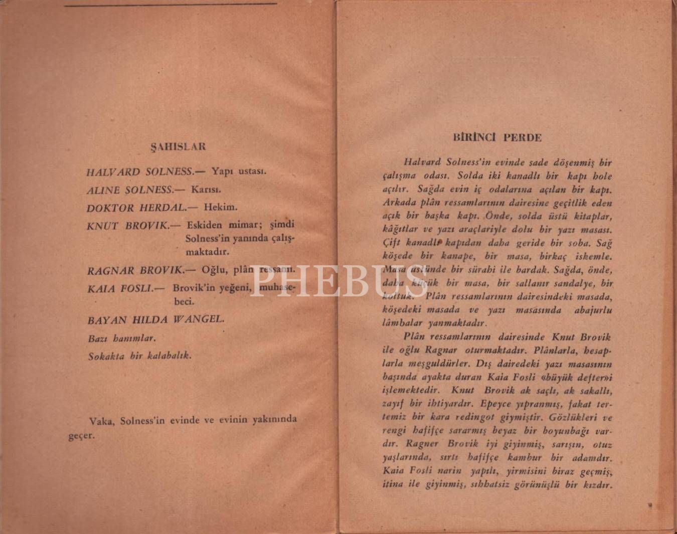 Çevirmen Avni Givda´dan tarafından Hamit Selekler´e ithaflı ve imzalı YAPI USTASI SOLNESS, H. Ibsen, Milli Eğitim Basımevi, İstanbul - 1946, 133 sayfa, 12x19 cm