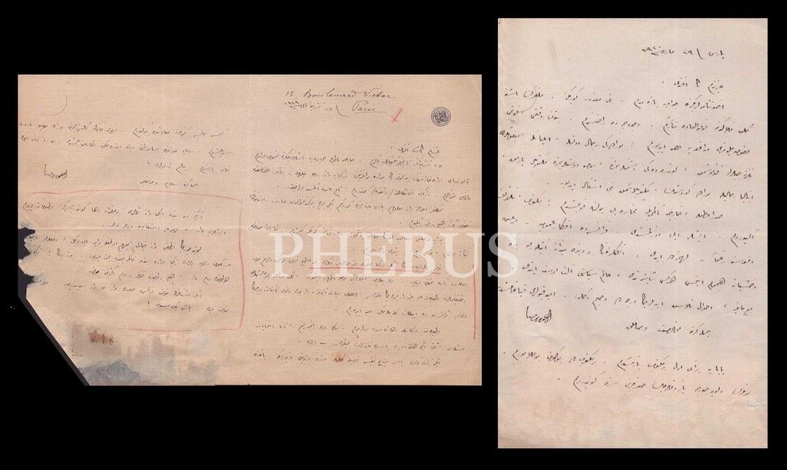 Galip Kemali Söylemezoğlu terekesinden: Ahmed Rıza´nın Galip Kemali Söylemezoğlu´ya hitaben Paris´te kaleme aldığı, 1919 ve 1920 tarihli 2 adet mektup, 18x27 cm; 13x21 cm