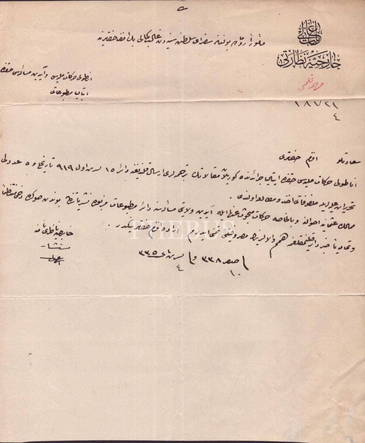 Hariciye Nazırı namına Roma Sefiri Galip Kemali Söylemezoğlu´ya yazılan ve Anadolu milli harekâtı ve Aydın meselesi hakkında İtalyan neşriyatından haberdar kılınmanın talep edildiği mektup, 4 Teşrinisani 1335, 20x24 cm