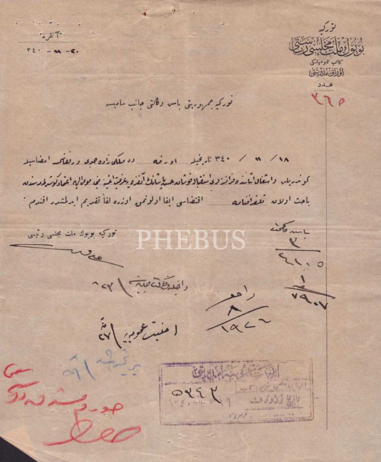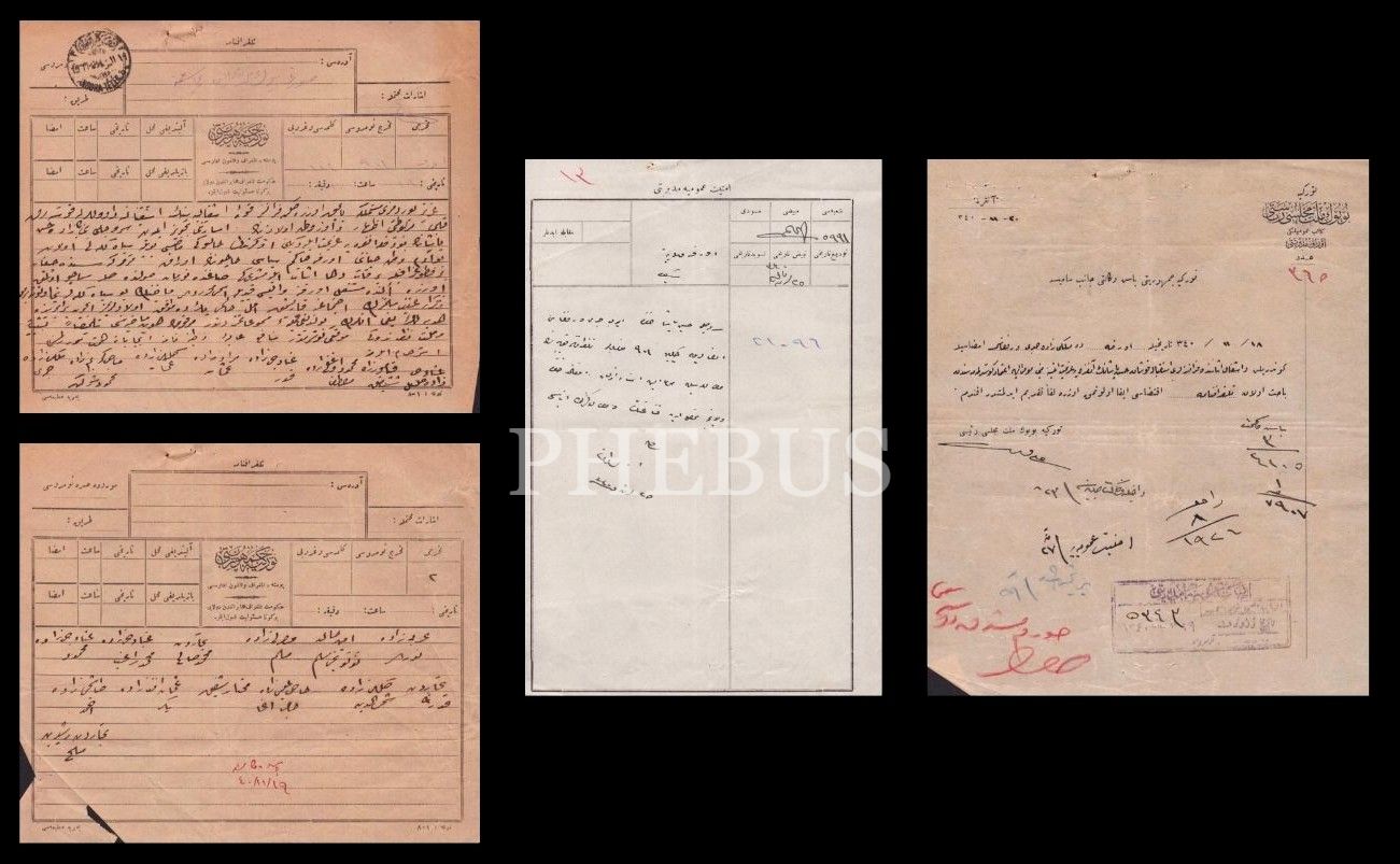 Urfalı Hasan Paşa hakkında, Fransızlara yardım ettiği iddiasıyla şehir tüccarı tarafından Büyük Millet Meclisi Riyasetine çekilen telgraf ve buna ilişkin belgeler (çeşitli boyutlarda 4 belge), 1340