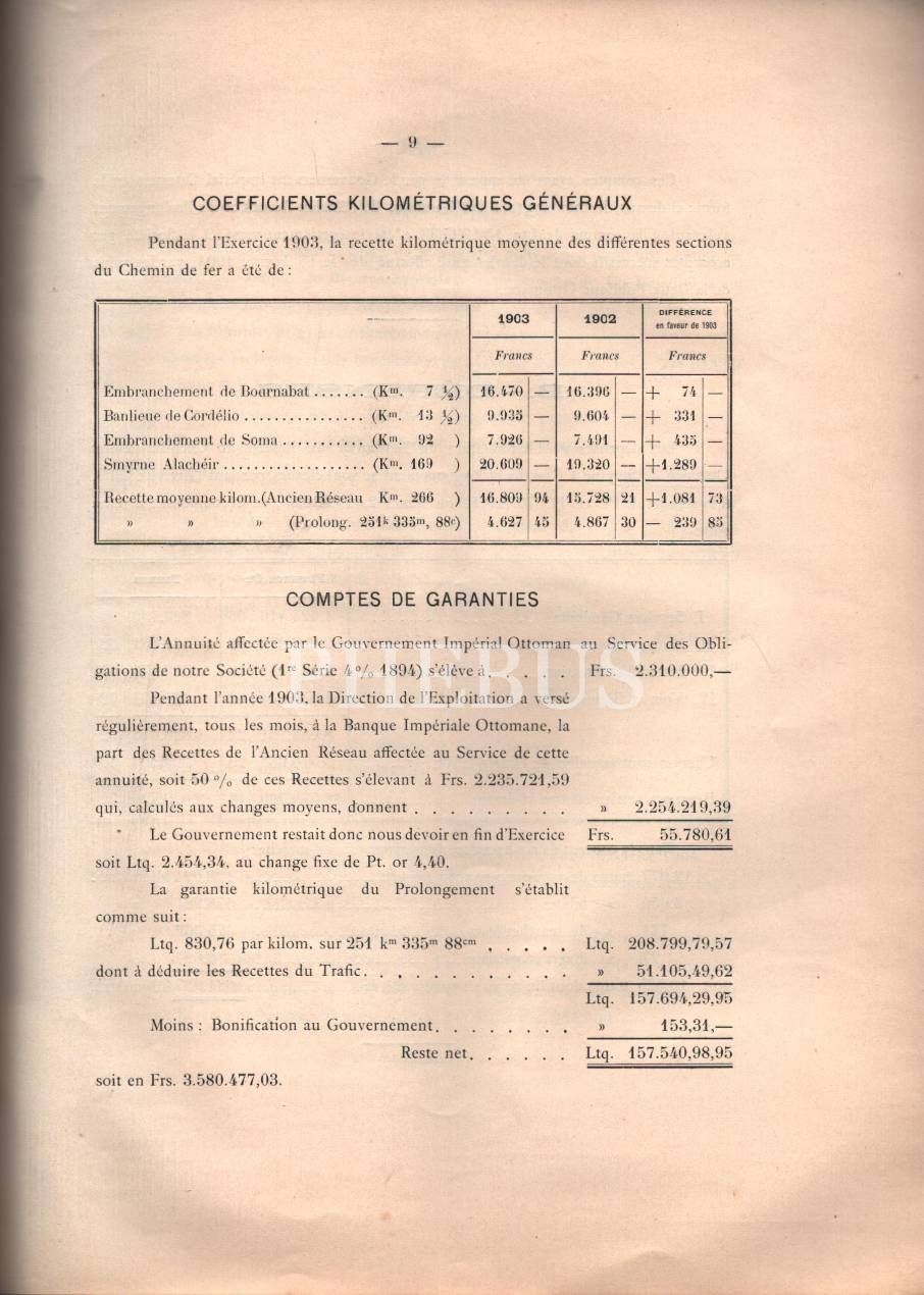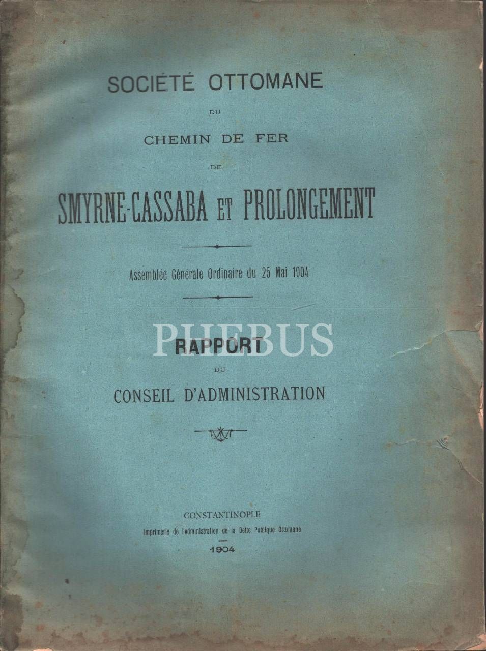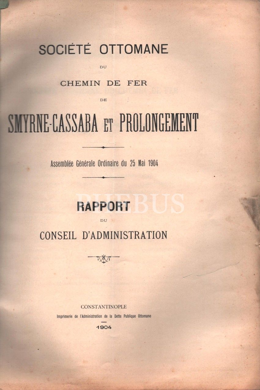 İzmir-Kasaba ve Uzantısı Demiryolu Osmanlı Şirketi´nin Fransızca Kurul Raporu, Constantinople 1904, 30 s., 24x32 cm