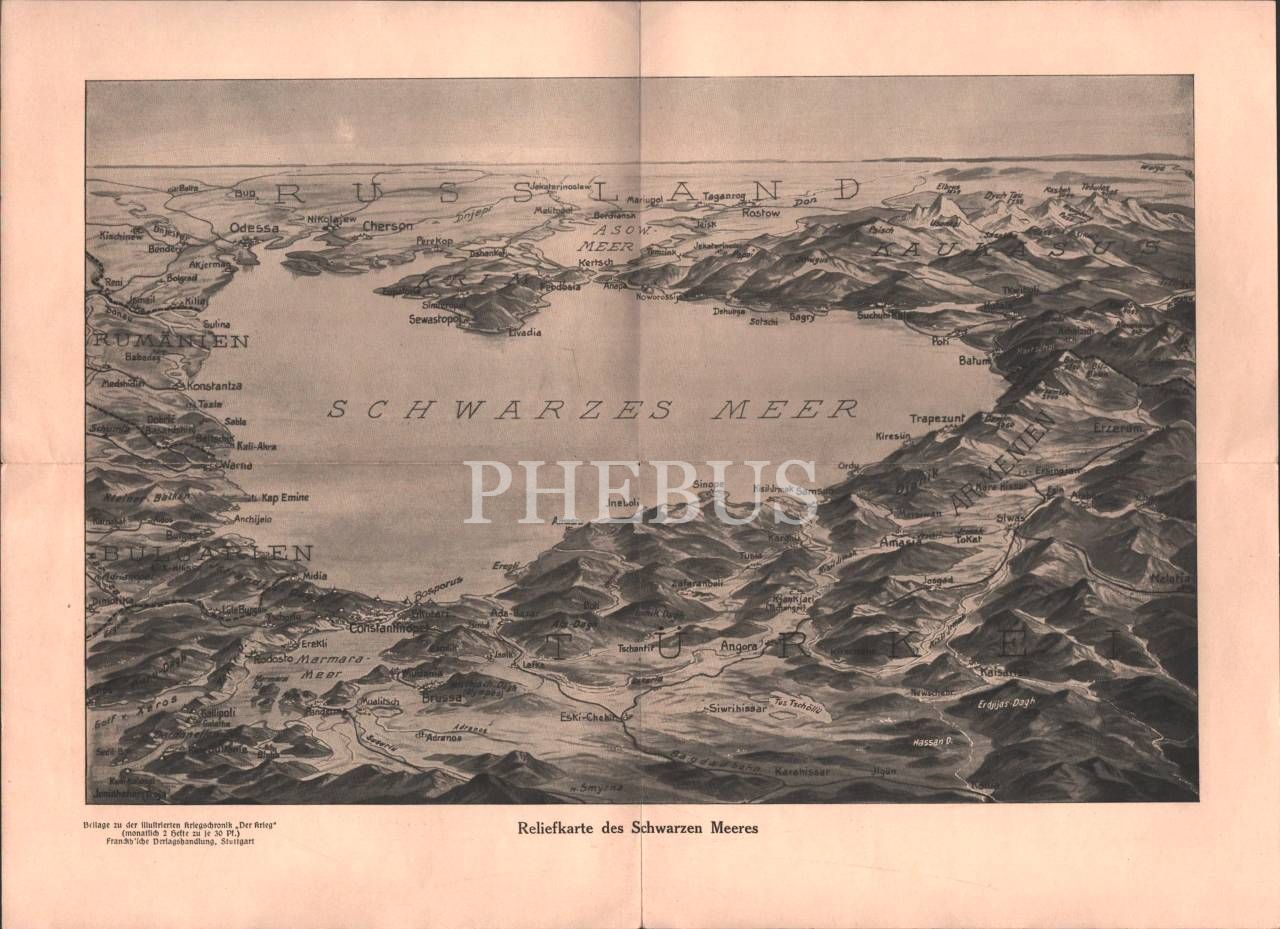 Özel kılıfında Almanca Çanakkale Boğazı, Karadeniz ve Kafkasya haritası, 26x36 cm
