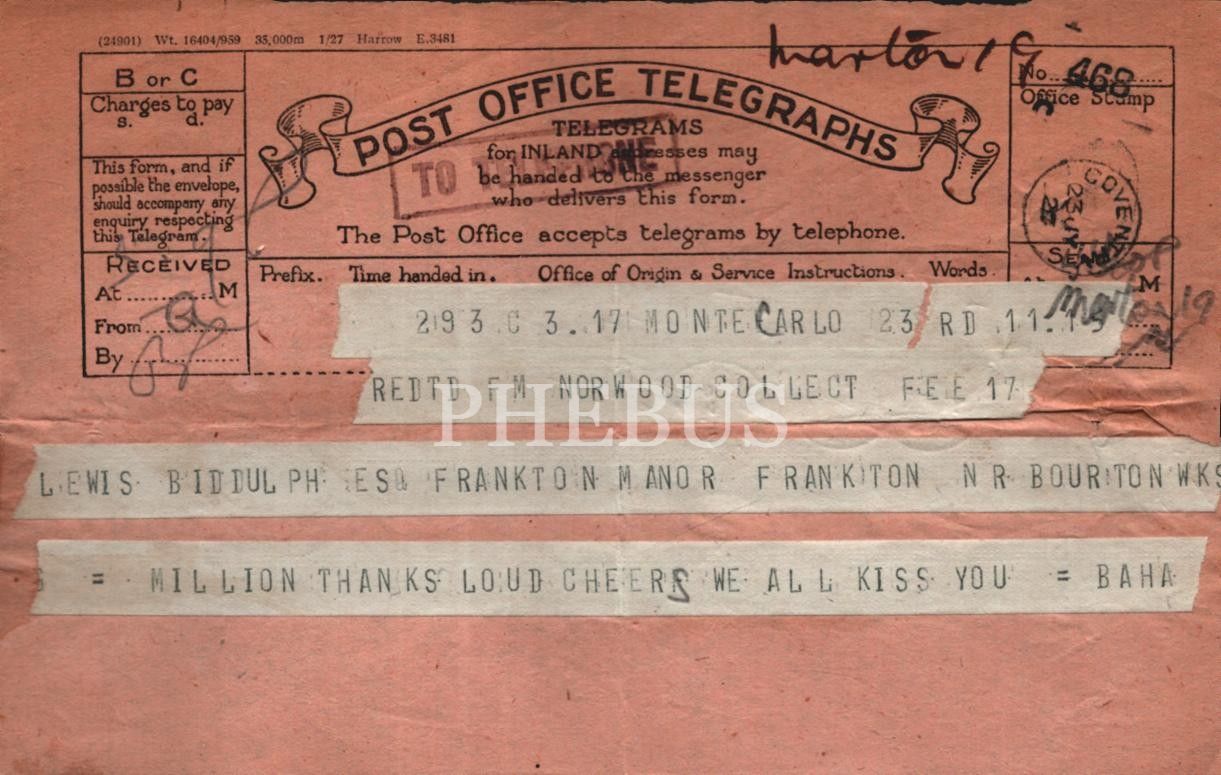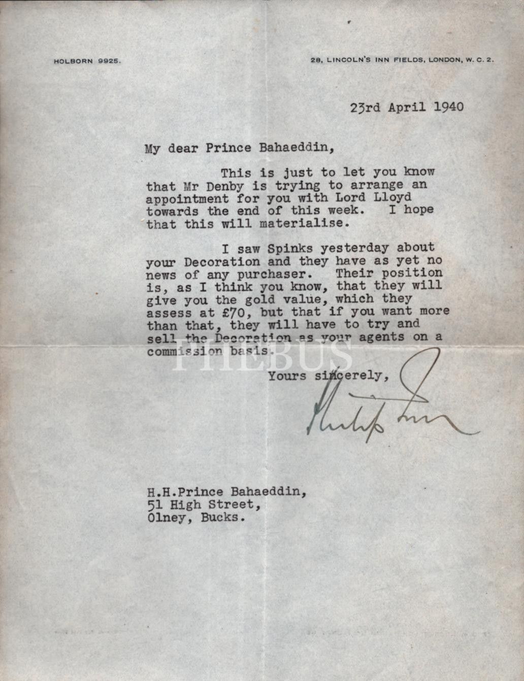 Sultan Vahdeddin´in yeğeni Prens Bahaeddin Sami´ye ait, 1925-1954 yılları arasında yazılmış İngilizce-Fransızca mektuplar, telgraflar ve çeşitli evrak ile Damad Ferid Paşa´nın vasiyetnamelerinin fotoğrafları (2 adet)