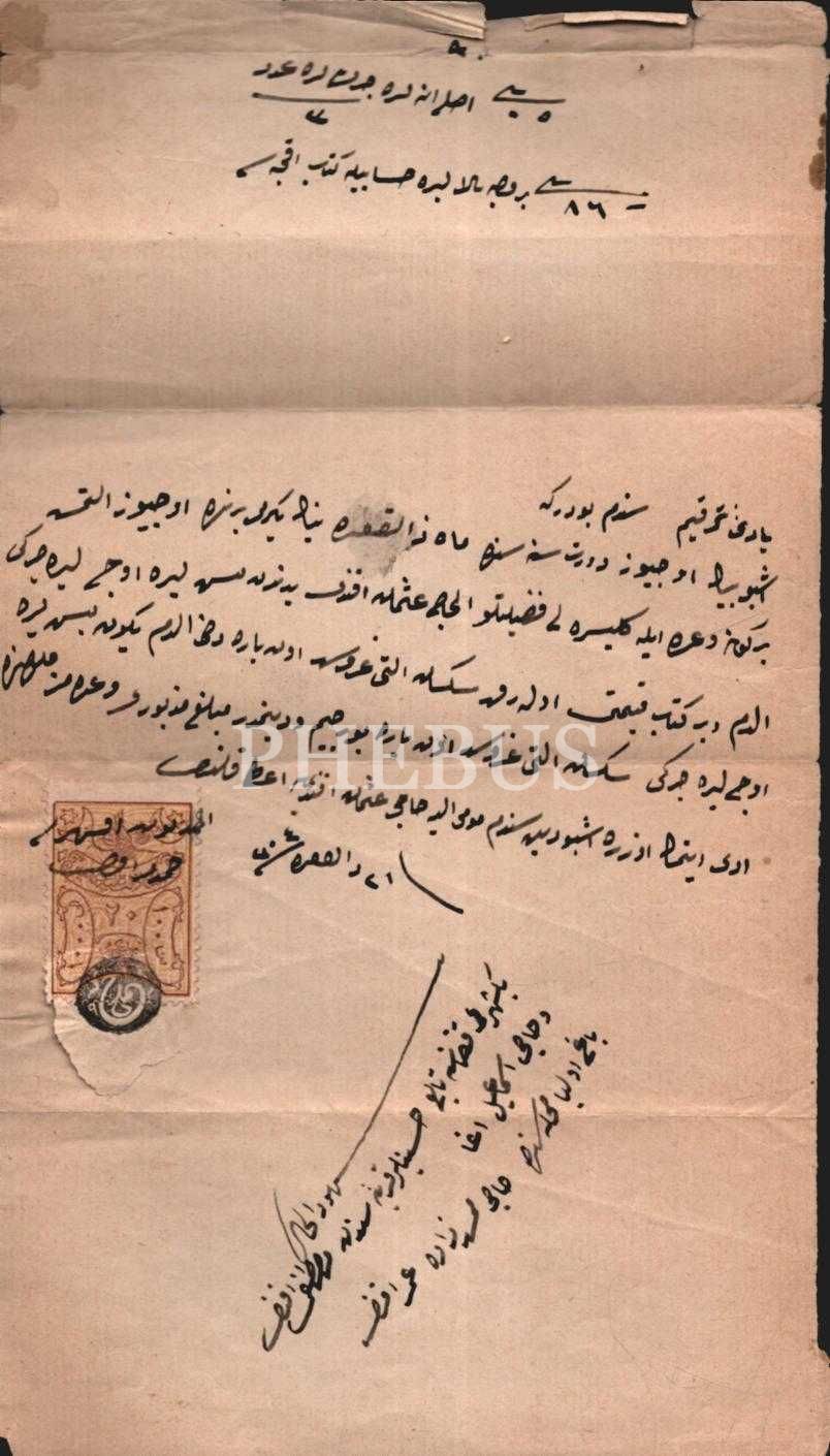 Aynı zamanda hukukçu ve Konya´nın tanınmış tüccarından olan Hacı Tahir Efendi´nin şahsi hayatına ışık tutan lot dahilinde Vilayet Merkezi Bidayet Mahkemesi hukuk kısmı üyeliğine tayin belgesi, fotoğraflı görev belgesi, tapu senedi, aile fertlerine ait nüfus kayıt örnekleri, şahsına ait banka hesap cüzdanları ve başka evrak mevcuttur.