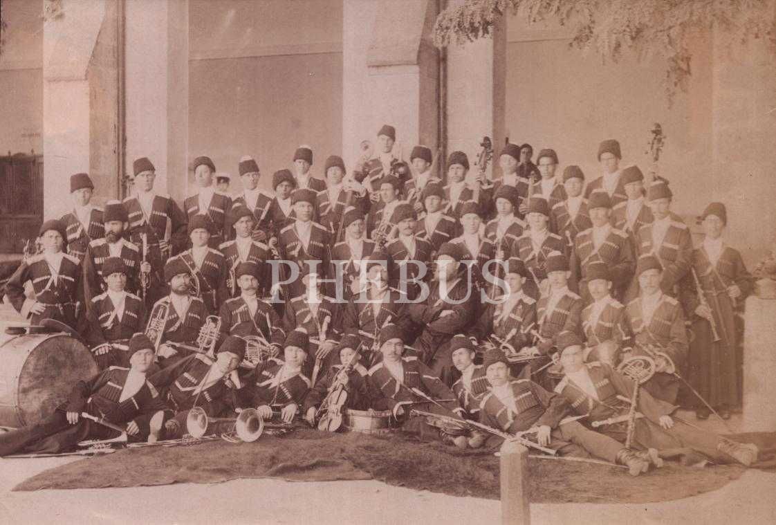 Yöresel kıyafetleriyle toplu hatıra fotoğrafı çektiren bando takımı, 13x19 cm