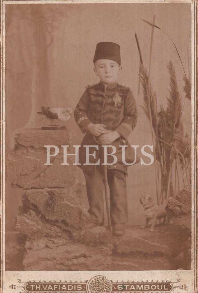 Minik Osmanlı askeri, Th. Vafiadis Fotoğrafhanesi- Stamboul/Constantinople, 11x16 cm