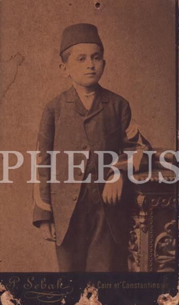 Sırma işlemeli özel kıyafetiyle poz veren minik Osmanlı, P. Sebah Fotoğrafhanesi- Constantinople, 6x10 cm