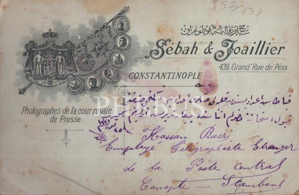 Fesli bir öğrencinin, Kabataş İdadisi´nden Kuleli Askerî İdadisi´ne kabul imtihanına giriş hatırası, 1327, Sebah & Joaillier Fotoğrafhanesi- Constantinople, 11x16 cm