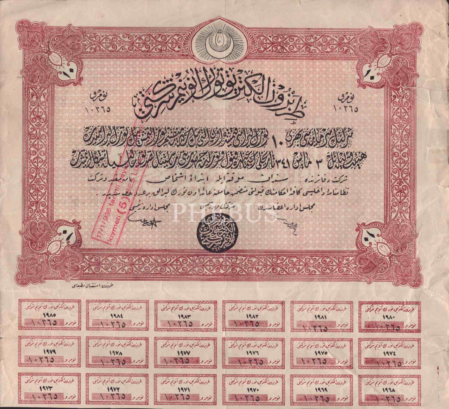 Trabzon Elektrik Türk Anonim Şirketi´ne ait hisse senedi, 29x31 cm