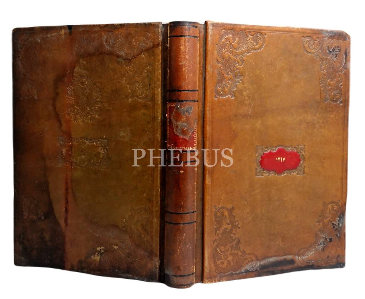 1317 senesine mahsus Osmanlı armalı deri sicil defteri, 31x43 cm