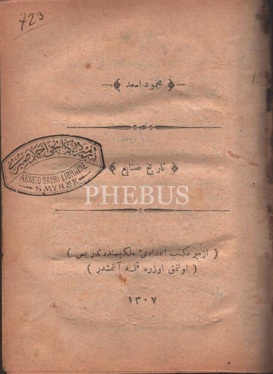 TARİH-İ SANAYİ, Mahmud Esad İbn-i Emin Seydişehri, İzmir Nuri Efendi Matbaası, 1307, 504 s., 12x17 cm
