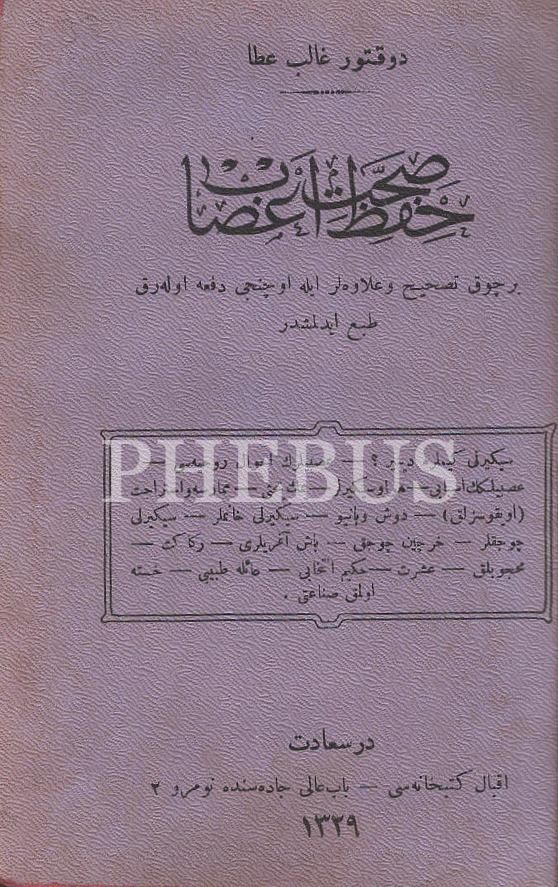 HIFZISIHHA-İ ASAB, Doktor Galip Atâ, İkbal Kitabhanesi, Dersaadet - 1329, 223 s., 12x18 cm