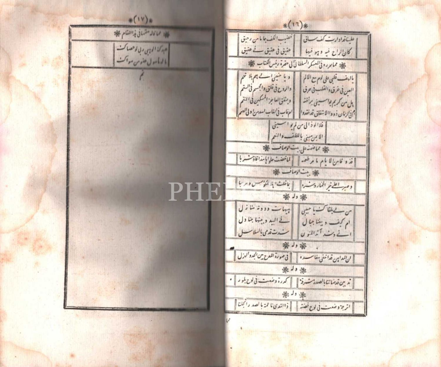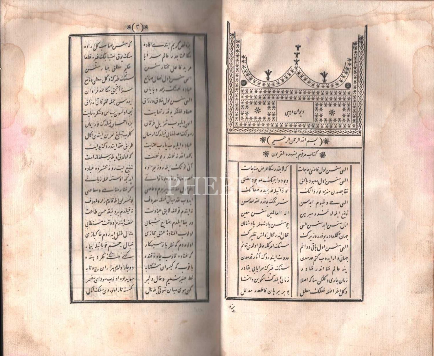 DÎVÂN-I VEHBÎ, Sünbülzade Vehbî, Bulak Matbaası, 1253, 296 s., DÎVÂN-I İSMAİL HAKKI, İsmail Hakkı Bursavi, Bulak Matbaası, 1257, 161 s., MAKALAT-I İSMAİL HAKKI, 1288, 55 s., Üç eser tek ciltte, 17x25 cm
