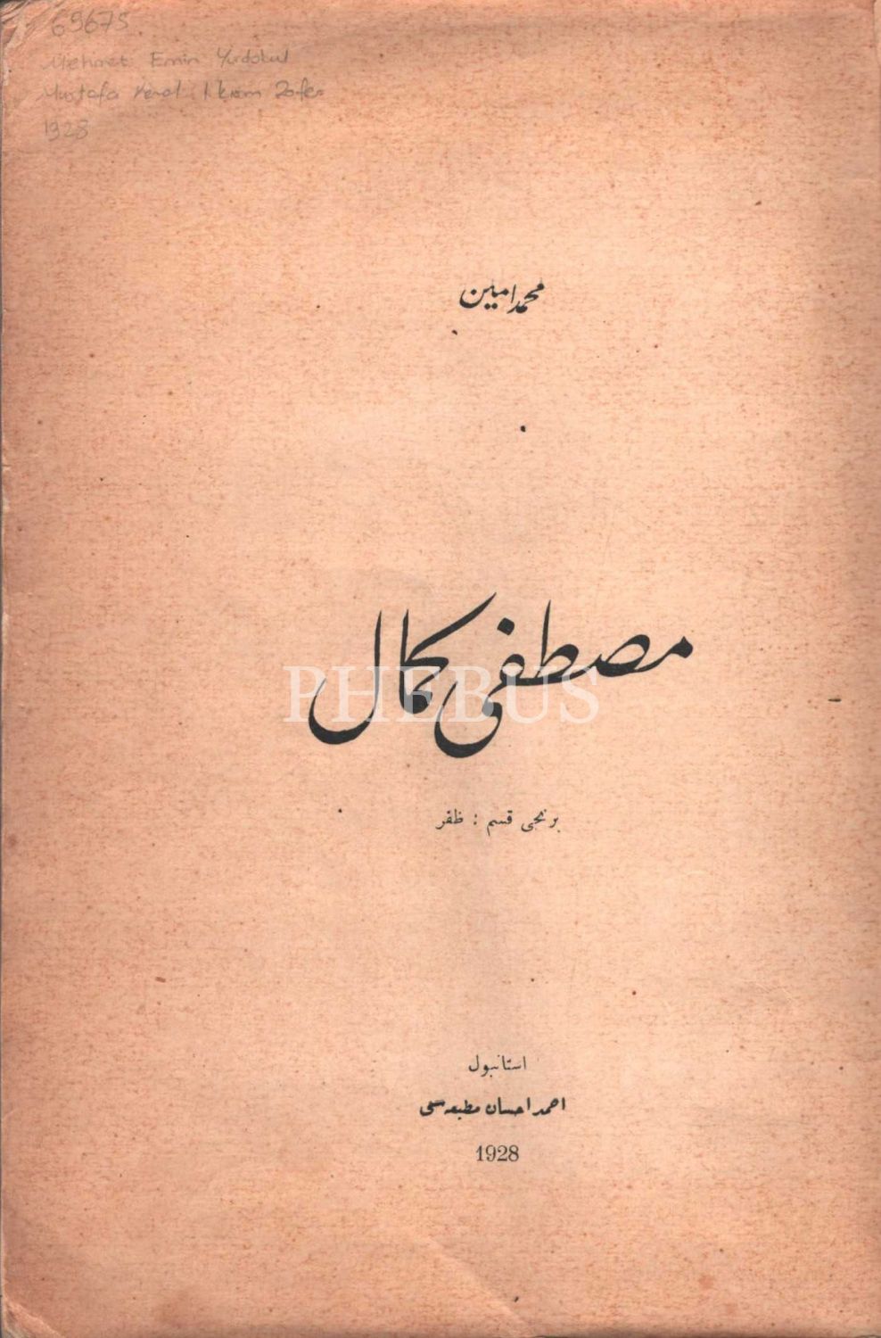 MUSTAFA KEMAL (1. Kısım: Zafer), Mehmed Emin Yurdakul, Ahmed İhsan Matbaası, İstanbul - 1928, 87 s., 20x27 cm