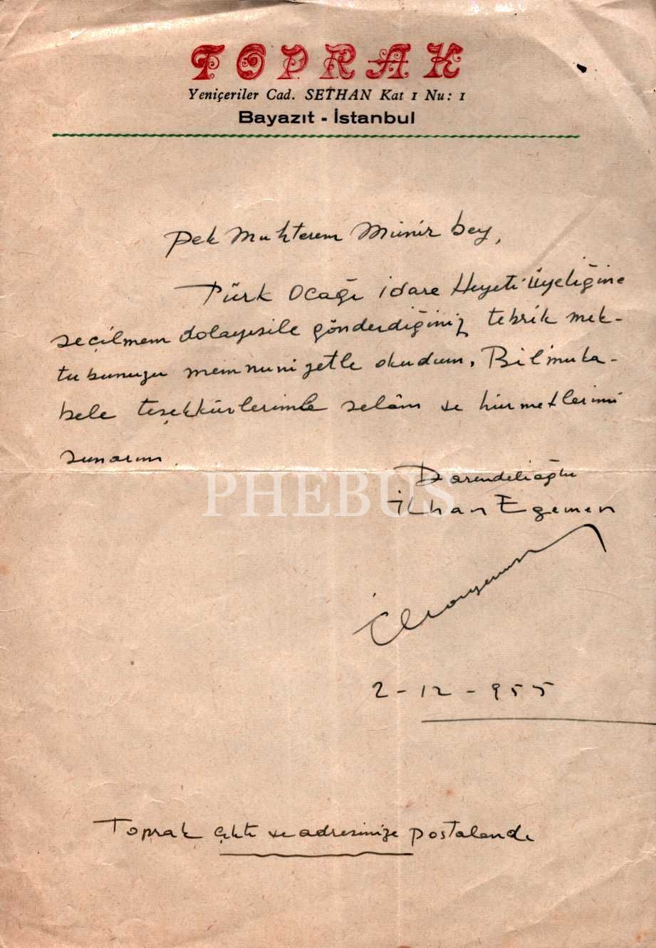 İlhan Darendelioğlu´ndan Türkçü Münir Yaylalıgil´e mektup, 15x22 cm