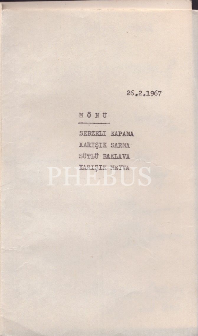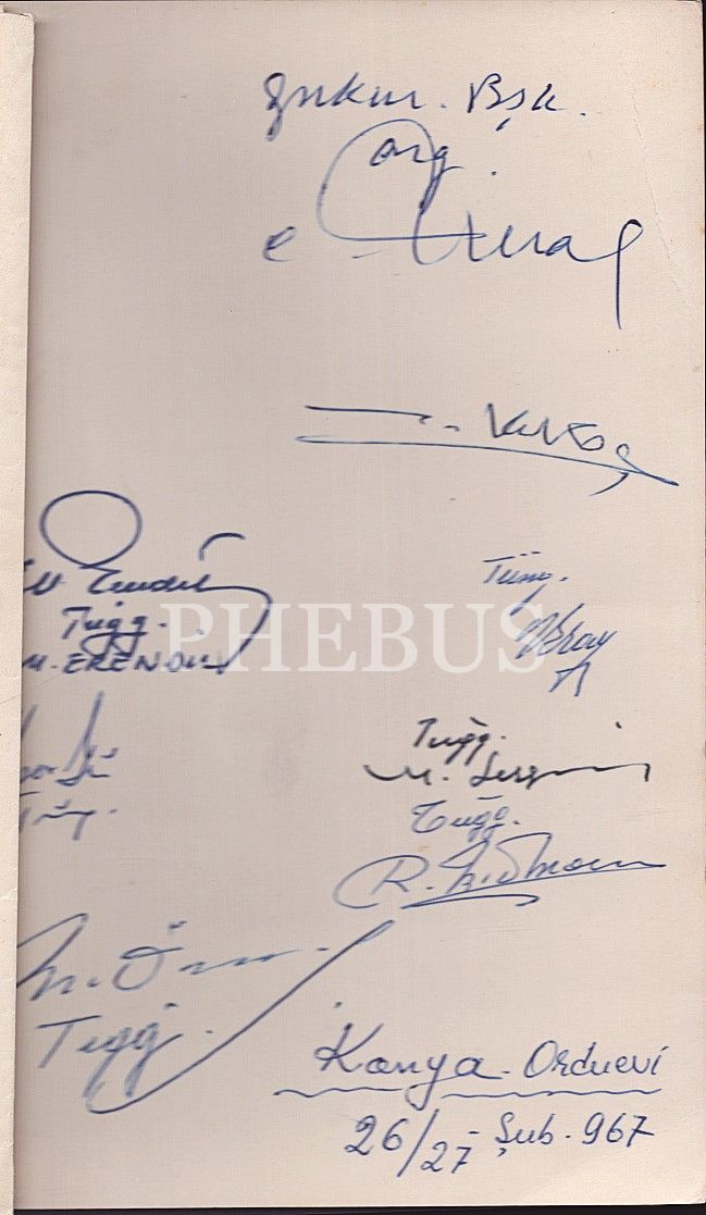 1967 tarihli yemek menüsünü parafe etmiş komutanlar, Org. Cemal Tural, Tuğg. Muzaffer Erendil, Tuğg. Muzaffer Özsoy vd., 12x19 cm