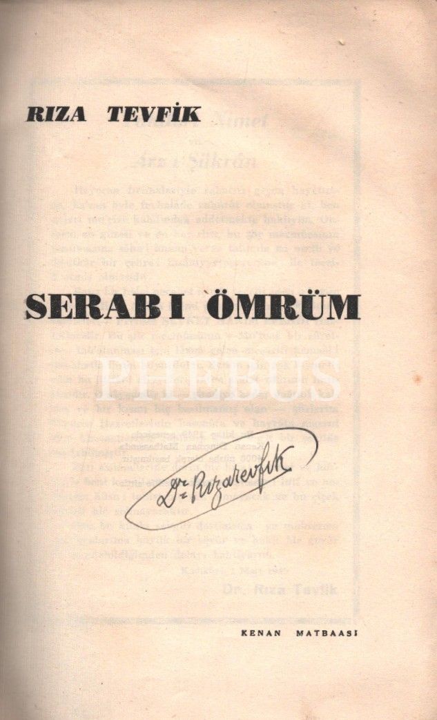 Rıza Tevfik´ten imzalı SERABI ÖMRÜM, Kenan Matbaası, İstanbul - 1949, 349 s., 15x23 cm