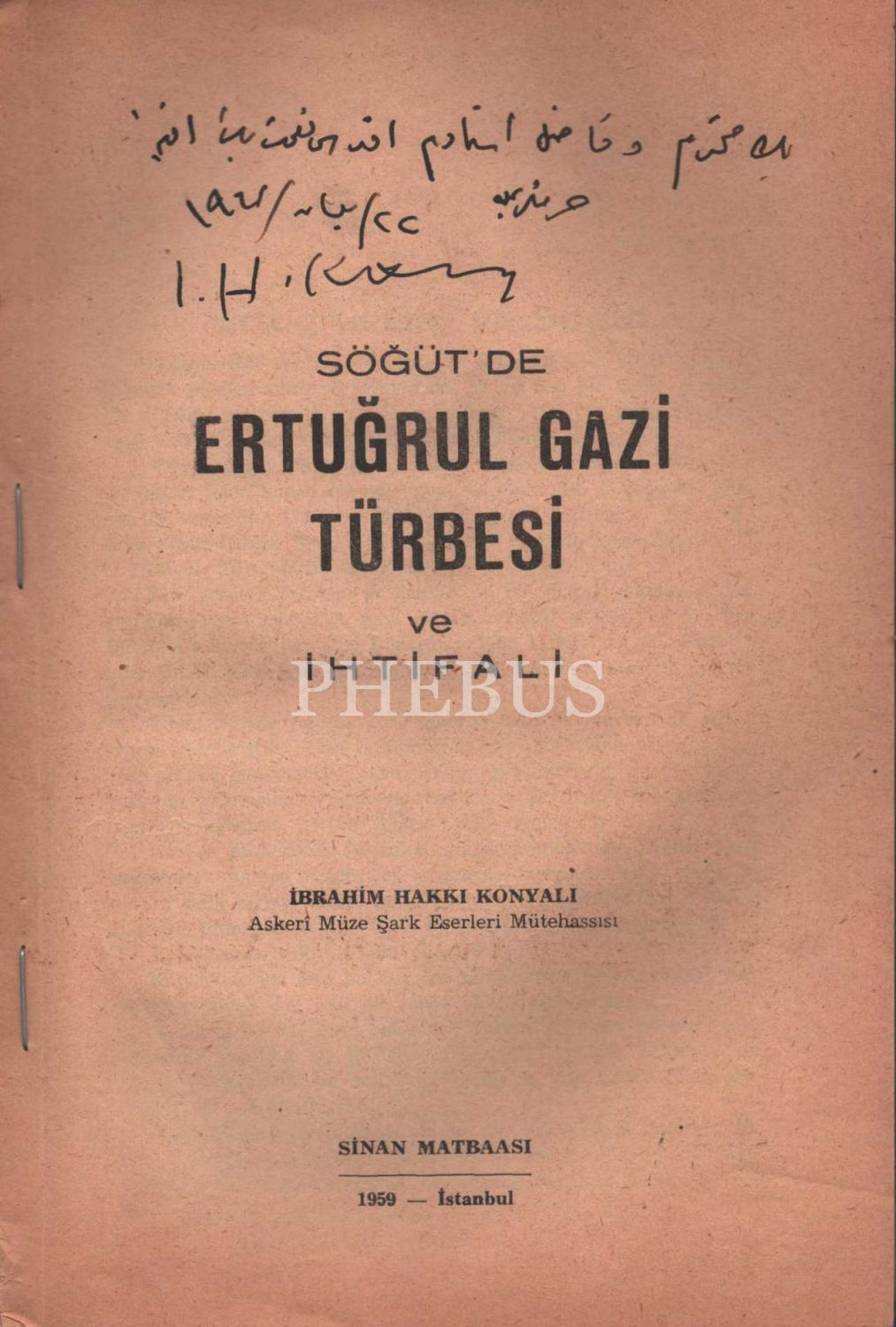 İbrahim Hakkı Konyalı´dan Akdes Nimet Kurat´a ithaflı ve imzalı SÖĞÜT´DE ERTUĞRUL GAZİ TÜRBESİ VE İHTİFALI, Sinan Matbaası, İstanbul - 1959, 63 s., 16x24 cm