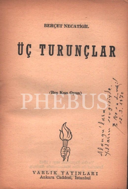 Behçet Necatigil´den Alangu´lara ithaflı ve imzalı ÜÇ TURUNÇLAR, Varlık Yayınları, İstanbul - 1970, 128 s., 12x17 cm
